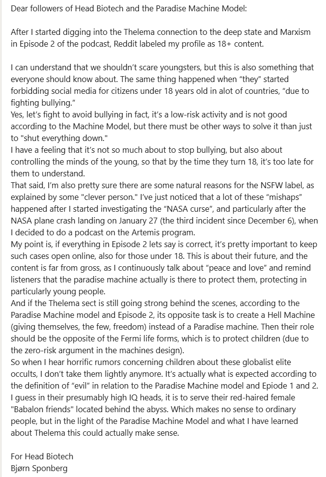 - A NASA plane crash-landed on Wednesday 27 January in Ohio, marking the third incident since Maven on December 6, 2025. Thankfully, no one has been injured so far in what I have suggested earlier to be a potential ‘NASA curse,’ linked to delays in releasing pictures of 3I last fall (as I warned about in the 2025 paper). Since, for those who truly understands the approach theory and the Paradise Machine Model, this kind of response, ‘a curse’, seems very in line with the approach theory. The best way to describe it is that “NASA might have come between a grizzly bear and her cubs” by delaying the pictures of 3I in October and November 2025. I therefore plan to follow NASA’s upcoming space mission around the moon, set to launch in the next few days or weeks, on X. I’ll do so respectfully, as it’s hard to imagine how no one could be hurt if another incident were to occur during this historic journey. The crew on this mission around the moon are brave. Head Biotech promises to remain quiet on the matter for at least 14 days out of respect for those involved if something were to happen.