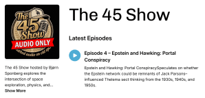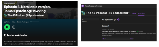 - Episode 4 with norwegian languge is now available on YouTube. The dubbed english version will be available on Rumble in a few days. The 45 Podcast is now also available on Spotify and on Apple. Hence, you can now listen on the podcast RSS feed, but so far only episodes on norwegian.
