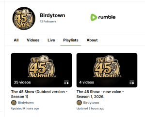 - The dubbed versions of episode 9 and 10 (live splash down) are now uploaded to the english podcast’s playlist on Rumble. This marks the end of season 1 in “The 45 Show” podcast.
