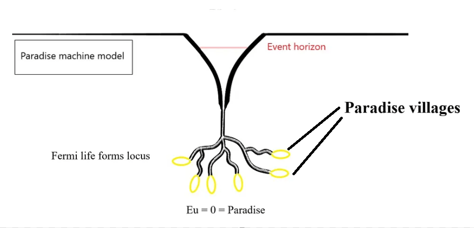 Illustration from the main 2025 article. The paradise women story from 2006 has influenced the development of seeing nature as a Paradise Machine Model (2024 and 2025), whose only purpose is to produce the eternal paradise state located behind the event horizon in relation to black holes.